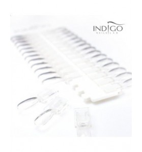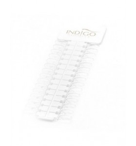Carta de colors Indigo elegant i funcional amb puntes reemplaçables. El blanc pur i brillant amb un logotip daurat és un fons eficaç per als nous colors.